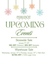 Everything happening at Peridot, all in one place. Discover upcoming events, in-store moments, and sales designed to bring our community together.